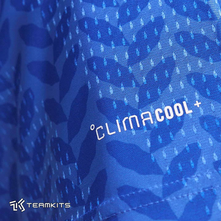 پیراهن جدید که با تکنولوژی بافت تنفسی جدید آدیداس(CLIMACOOL+) تولید شده، در زمینه به رنگ آبی همراه با یک پترن حاصل تکرار شاخه های برگ دار ذر سرتاسر پیراهن ارائه شده است. یقه و نوار لبه آستین به رنگ آبی تیره و طلایی روشن کار شده و سه خط پهن آدیداس نیز به رنگ طلایی روشن بر روی شانه خودنمایی می کند.