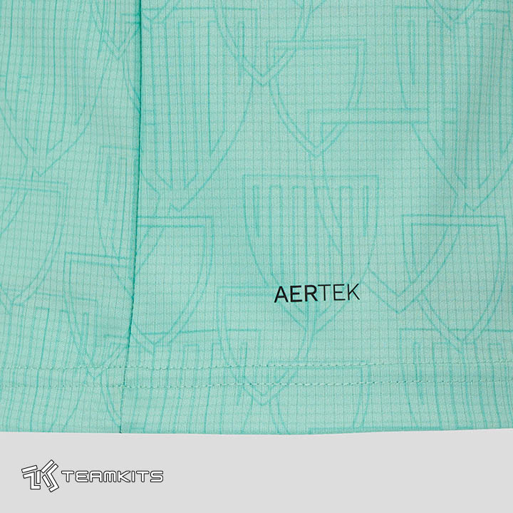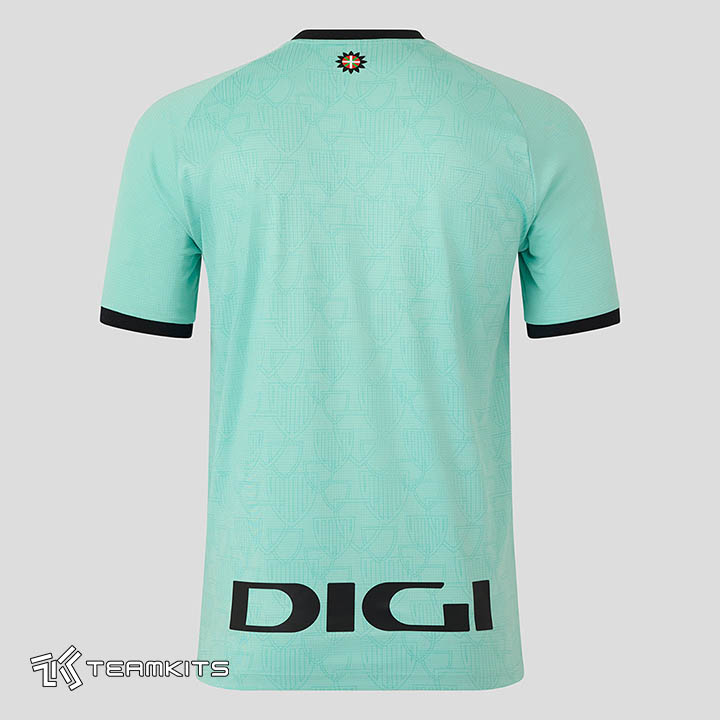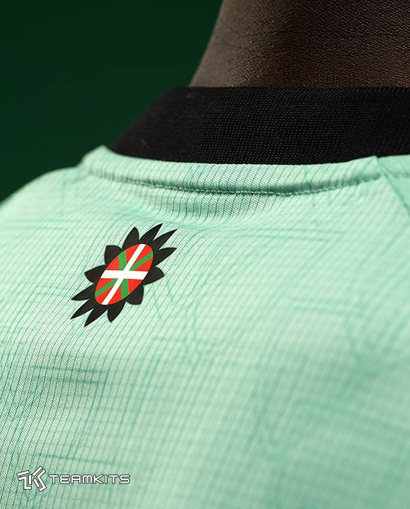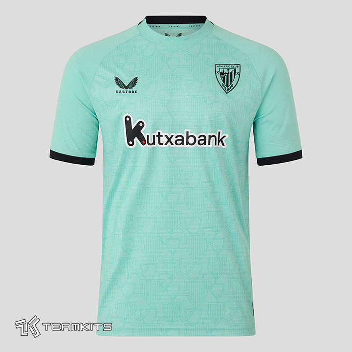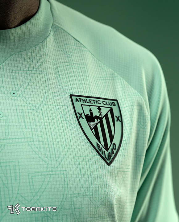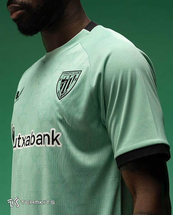 پیراهن جدید در زمینه به رنگ فیروزه ای روشن همراه با یک پترن محو متشکل از نقوش پراکنده با فرم لوگوی باشگاه بیلبائو در قسممت جلوی پیراهن ارائه شده است. یقه، نوار لبه آستین و همچنین لوگوی تک رنگ باشگاه و کاستوره به رنگ مشکی هستند و شورت و جوراب فیروزه ای روشن ترکیب لباس سوم اتلتیک بیلبائو در فصل ۲۰۲۶-۲۰۲۵ را کامل می کند.